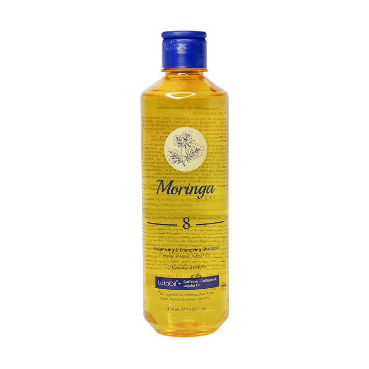 شامپو حجم دهنده و انرژی بخش ۸ مورینگا امو مناسب موهای معمولی و نازک با فرمولاسیون انحصاری تولید شده است. از آنجایی که موها نقش بسیار مهمی در زیبایی ایفا میکنند، کمک گرفتن از مواد طبیعی بهترین راه محسوب میشود. برند مورینگا امو با عرضه محصولاتی مانند شامپو حجم دهنده موهای معمولی و نازک در این زمینه معجزهای به همراه دارد. لافا اویل یکی از ترکیبات اختصاصی این محصول است. این ترکیب انحصاری شامل روغن آرگان، مورینگا، آفتاب گردان و هسته انگور میشود که یک ترکیب لطافت بخش و شفا دهنده هرگونه مشکل و آسیب است. شامپو موهای معمولی و نازک مورینگا موها را پاکسازی نموده و به هیچ عنوان موجب خشکی مو نمیشود. همچنین با رطوبت رسانی عمقی، تغذیه و استحکام بخشی انرژی لازم برای احیای مو را فراهم میکند. به همین دلیل استفاده از این شامپو یکی از روشهای درمان موهای نازک محسوب میشود.