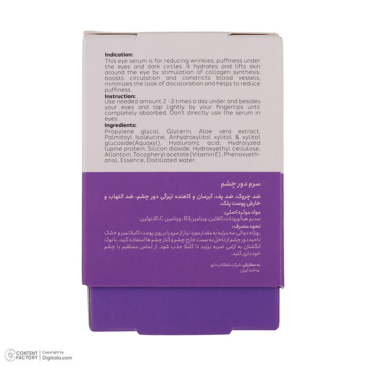 سایر مشخصات: حاوی سدیم هیالورونات، ویتامین های B3 و C، آلانتوئین و کافئین