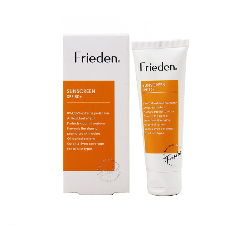 کرم ضد آفتاب فریدن تحت لیسانس کشور فرانسه تولید و بسته بندی شده و به عنوان یک گزینه مناسب برای استفاده روی انواع پوست، توانسته جایگاه ویژه ای در بین محصولات پوستی برند فریدن پیدا کند. عصاره آلوئه ورا به کار رفته در این کرم، به عنوان یک ماده ضد التهاب و رطوبت رسان، موجب تسکین پوست آسیب دیده و ملتهب بر اثر تابش مداوم نور آفتاب می شود.