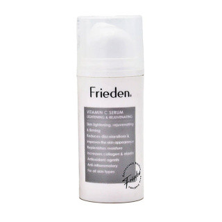 سرم ویتامین سی فریدن Frieden در حقیقت یک کمپلکس جوانسازی است که از افتادگی پوست جلوگیری می کند و زیبایی را برای پوست به ارمغان می آورد. سرم فریدن، سنتز پروتئین های ساختاری پوست را با استفاده از کلاژن و الاستین سرعت می بخشد و این فرآیند سبب بازسازی ساختار پوست می شود.