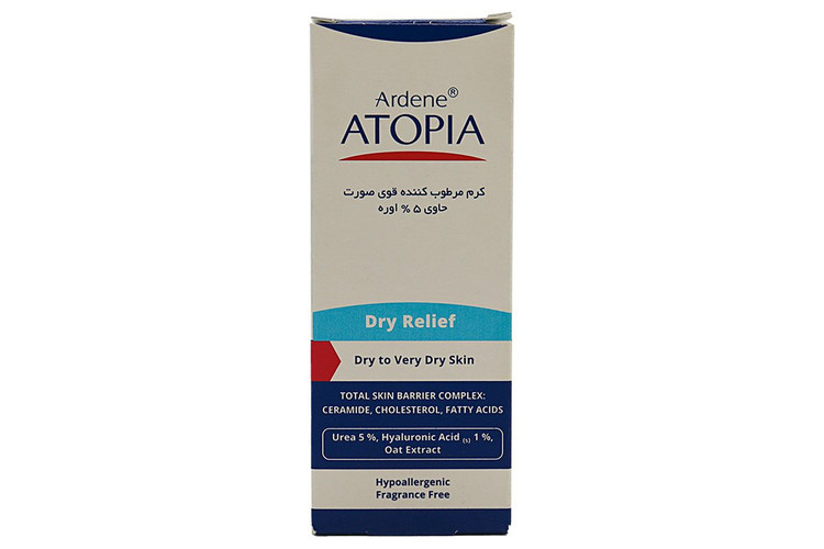 کرم مرطوب کننده قوی صورت آردن آتوپیا حاوی 5% اوره با بهره گیری از مواد مغذی و معدنی ویتامین های مختلف علاوه بر رطوبت رسانی عمیق پوست از ایجاد چین و چروک در پوست جلوگیری میکند و باعث جوانسازی و حفظ رطوبت و شادابی پوست میشود.