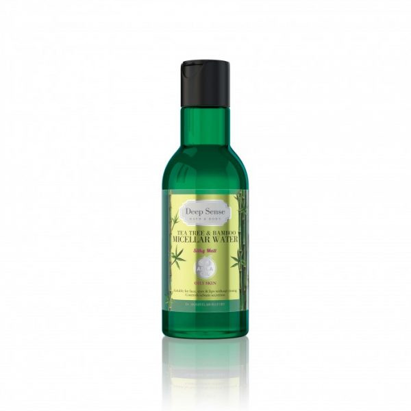 پاک کننده آرایش درخت چای و بامبو دیپ سنس، مناسب پوست های چرب، حاوی زینک پی سی آ، هیالورونیک اسید، روغن های آملا و درخت چای و عصاره بامبو، به عنوان پاک کننده آرایش صورت، چشم و لب بدون نیاز به آبکشی، تنظیم ترشح چربی پوست، فاقد صابون، الکل و پارابن می باشد.