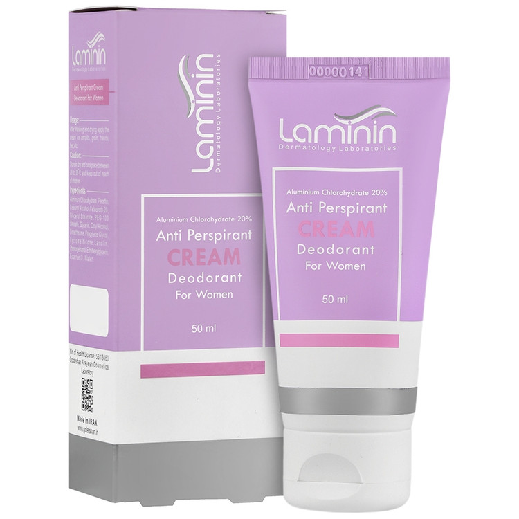کرم ضد تعریق دئودرانت بانوان لامینین برای قسمت هایی از بدن که با تعریق زیاد خود باعث ایجاد بوی نامطبوع و لک شدن لباس می شوند، قابل استفاده می باشد. این محصول به سرعت جذب پوست شده و موضع تعریق را خشک نگاه می دارد، بنابراین هیچگونه لک یا چربی بر روی لباس باقی نمی گذارد.