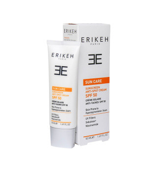 ضدافتاب ضدلک اریکه با علاوه بر محافظت بالا در برابر اشعه UVA/UVB ، از ایجاد لک و کک مک ناشی از افتاب جلوگیری میکند. این محصول حاوی عصاره برگ شاه توت و نیاسنیامید است که علاوه بر جلوگیری از ایجاد لک، لک های قدیمی را نیز کمرنگ میکند. ضدافتاب ضدلک اریکه بافتی سبک دارد و برای انواع پوست بخصوص پوست های مستعد به لک مناسب است. پوشش کرم پودری و رنگی این محصول، شما را از استفاده کرم پودر و پنکک بی نیاز میکند.