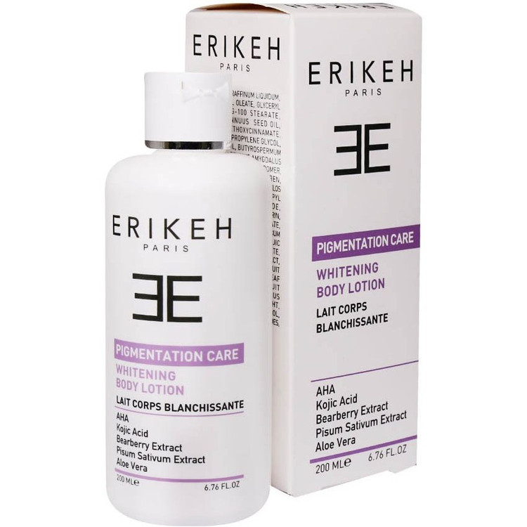 لوسیون ضد لک و روشن کننده بدن اریکه به صورتی فرموله شده که سریع و آسان جذب شود، و بدون بر جا گذاشتن اثر چربی پوست را تغذیه و احیا کند. سفید کننده بدن اریکه حاوی ترکیبات منحصر به فرد مانند آلوئه ورا و عوامل آبرسان برای نرم و مرطوب کنندگی پوست بدن است،و با اسید کوجیک و عصاره باربری که به محو شدن نواحی پر رنگدانه روی پوست کمک می کند.