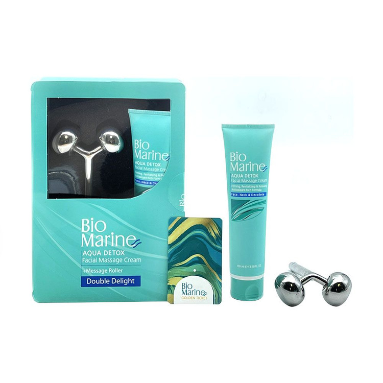 کیت کرم ماساژ صورت و گردن بایومارین ۱۰۰ میل همراه با رولر ماساژور