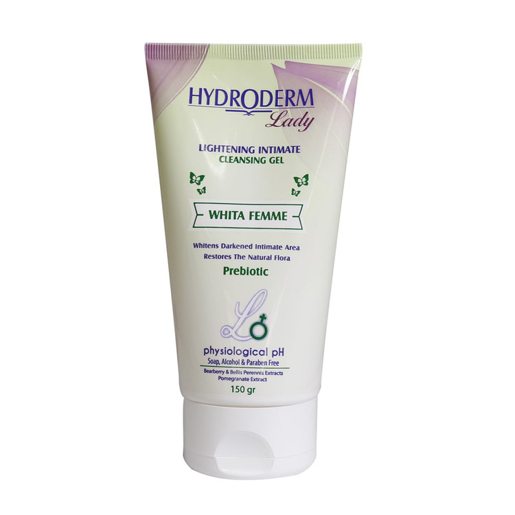 ژل بهداشتی روشن کننده بانوان هیدرودرم همراه با حفظ تعادل طبیعی فلور ناحیه ژنیتال به کاهش تیرگیهای این ناحیه نیز کمک میکند. این محصول مخصوص شستشوی پوست قسمتهای خارجی ناحیه تناسلی بانوان است. در این ژل از مواد صابونی، الکل و پارابن استفاده نشده است. ویتامین سی و ترکیبات پری بیوتیک موجود در این ژل در کاهش تیرگیهای این ناحیه از بدن موثر هستند. در این ژل از عصارههای گیاهانی همچون بلیس پرنیس، بورداک و بیربری استفاده شده است