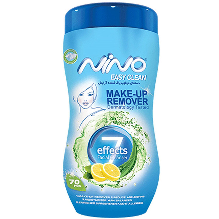 دستمال مرطوب پاک کننده آرایش نینو مدل قوطی 70 عددی