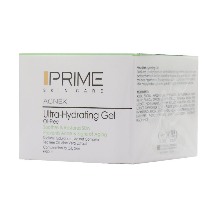 ژل آبرسان قوی پوست چرب پرایم فوق العاده سبک و فاقد چربی، با دارا بودن ترکیبات موثر به رفع چربی اضافی پوست و جمع کردن منافذ آن کمک میکند. به همین خاطر استفاده از ژل آبرسان ظاهری مات و یکدست به پوست چرب و مختلط افراد میبخشد. علاوه بر آن ترکیبات جوان کننده به کار رفته در این محصول، ضمن آبرسانی عمقی پوست سبب جوانسازی و رفع چروکهای ریز آن میشوند. یکی از ترکیبات موثر ژل آبرسان سدیم هیالورونات است.