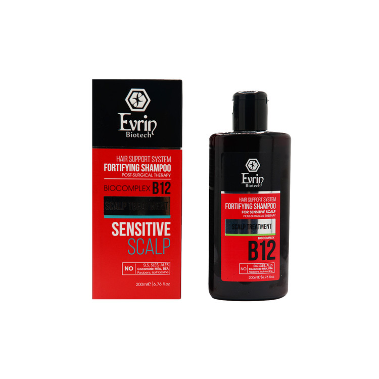 شامپو تقویت کننده مناسب پوست سر حساس اورین بیوتک (Evrin Biotech Fortifying Shampoo For Sensitive Scalp) حاوی مواد شوینده ملایم و ایمن، قابل استفاده بعد از prp، کاشت مو و جراحیهای کفسر و افرادی که دارای پوست حساس و تحریکپذیر میباشد. شامپو بعد از کاشت مو اورین بیوتک دارای اثرات آنتیباکتریال و ضدقارچ و ضدشوره بوده و دارای کف کنترل شده و آبکشی راحت و سریع میباشد. در ضمن موثر بر جلوگیری از ریزش مو و تحریک رشد موها میباشد.