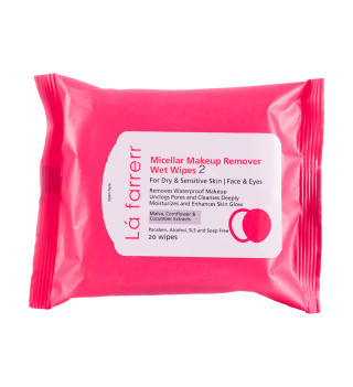 دستمال مرطوب پاک کننده آرایش پوست خشک و حساس بسته 20 عددی کد 2 لافارر