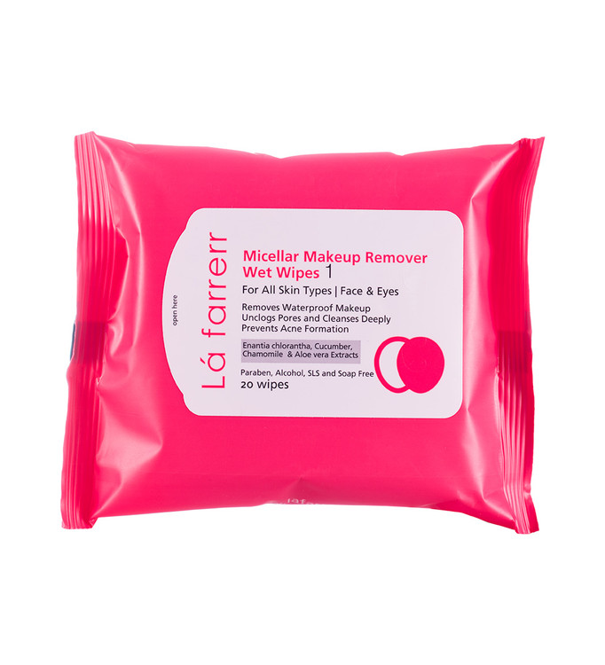 دستمال مرطوب پاک کننده آرایش انواع پوست بسته 20 عددی کد 1 لافارر