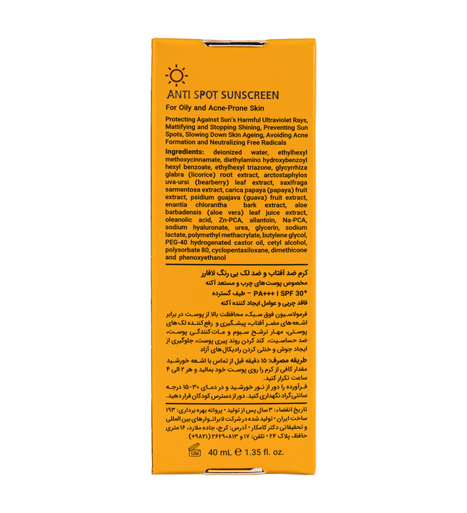 ضد آفتاب و ضد لک لافارر پوست چرب و آکنه دار SPF 30 بی رنگ 40 میل